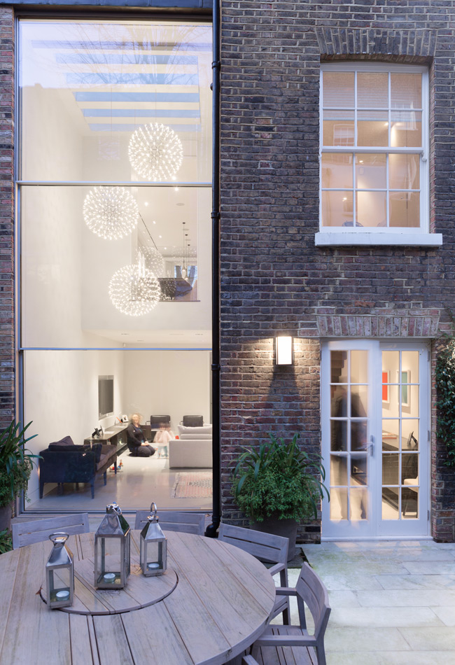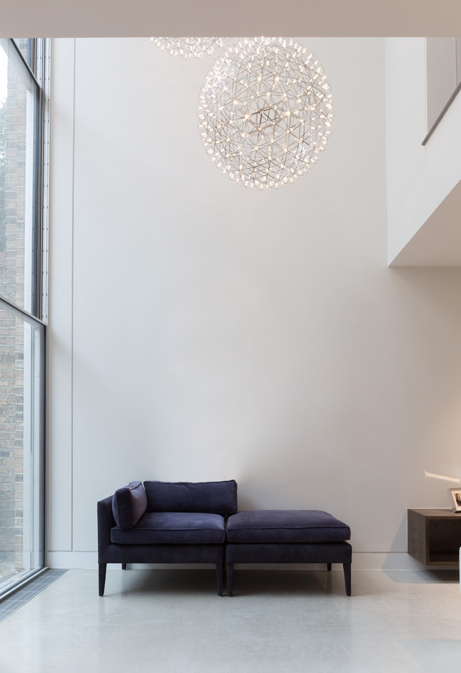 A fabulous double height, fully glazed extension maximized daylight and provided an opportunity to use beautiful, dramatic feature pendants that look fantastic on or off. Washes of soft light accent original period features, with the latest LED technology and a lighting control system ensuring this scheme is very energy efficient with low maintenance and minimal running costs.