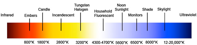 Candles are very warm of course, basically yellow/orange, whereas daylight at noon is very cool. The colour or warmth of white light is ranked on a scale, The Kelvin scale, the warmer the colour the lower the colour temperature. Candles being around 2000 degrees Kelvin (k) while daylight typically 5500 – 6500k