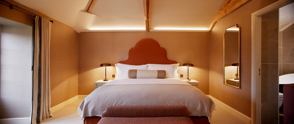 Guest rooms are where lighting becomes personal. This is the guest’s retreat, and everything should feel simple and comfortable. Warm 2700K light is the foundation, with glare-free task lighting at desks and mirrors around 300 lux and a high CRI for accurate colour. Bathrooms need similar attention — soft ambient light with stronger vertical illumination at mirrors makes a huge difference to how people feel when they look at themselves. In bedrooms, it’s often best to avoid overhead downlights altogether, using accent lighting or hidden sources instead. A low-level night light marking the route to the bathroom can be far more thoughtful than a bright ceiling fitting.