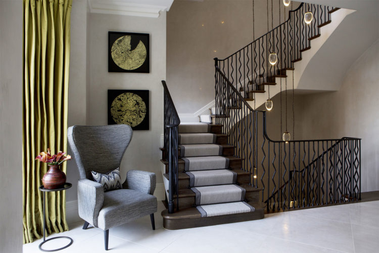 Stair cases tend to be functional spaces that don’t usually require dimming. Its good to consider the switching from the outset to ensure that you have the functionality of being able to turn the whole stairwell on and off and to be able to turn the floors on or off above and below you – the switching can get quite complicated if it isn’t considered from the outset.